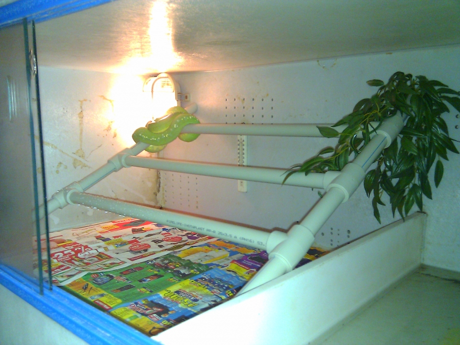 Tyto hady chováme v páru nebo odděleně v teráriu o rozměrech 70x60x60.V teráriu jsou velké plastové misky s odstátou vodou.Teplotu udržujeme od 26-30°C při 60- 90% vlhkosti. Terária jsou osazena jak živými tak i umělými rostlinami. Žebříky jsou svařeny z PVC trubek. Vytápění je jak topnými foliemi tak i vespod jsou topné kabely.
